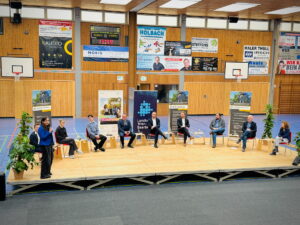 Der Abschluss der gelungenen Projektwoche bildete eine hochrangig besetzte Podiumsdiskussion. Neben den beiden Schülern des Wirtschaftsgymnasiums, Lysann Blatt und Samuel Serra, diskutierten dort Landrat Stefan Metzdorf, Dr. Peter Domma, Vorstandsmitglied und Chief Digital Officer von Villeroy & Boch, Christoph Köhler, Projektmanager Villeroy & Boch AG, Prof. Dr. Christoph Tholen von der Hochschule für Technik und Wirtschaft (htw) Saar, Christian Reuter von der IHK Trier sowie Jenny Zeyen vom Tageblatt Luxemburg zusammen mit Oberstudienrat Alexander Kammer über dieses sehr spannende Thema. Im Mittelpunkt standen hierbei die Fragen, welche Chancen und Risiken sich durch KI in den verschiedensten Bereichen aktuell und in Zukunft ergeben?