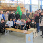 Bilder vom Austausch 2019: Bau von Weihnachtsbäumen für die beiden Städte und von Bänken und Hockern für die Glockengießerei in Saarburg. Die beteiligten Deutschen und französischen Tischler-Auszubildende mit ihren Lehrerinnen und Lehrern.